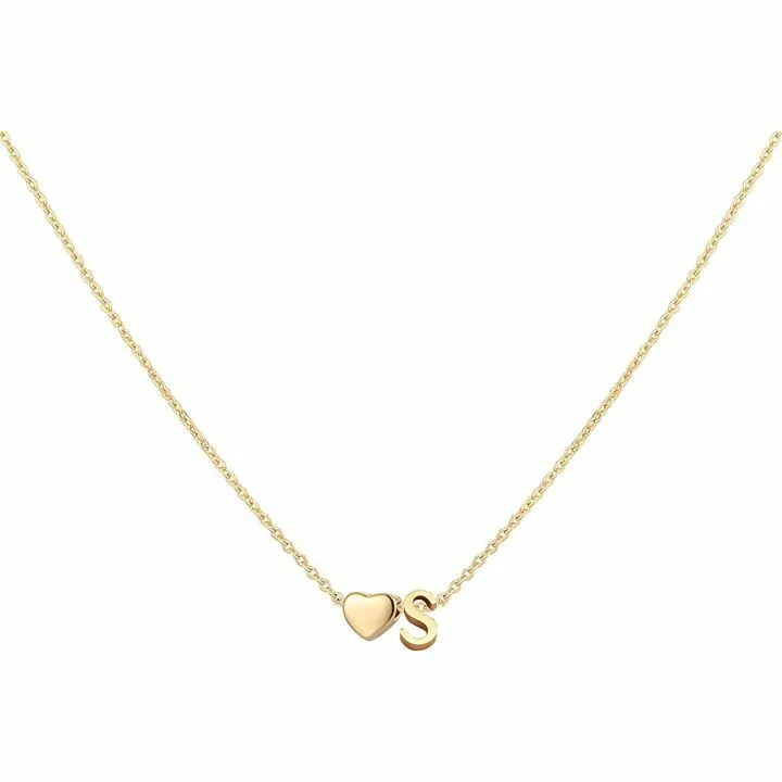 Glimmerst Initial Heart Necklace - 18K Gold Plated Personalized Charm for Women
