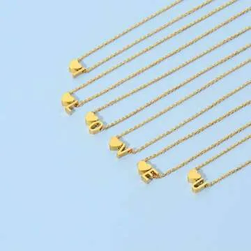 Show more Indulge in the exquisite charm of our heart initial necklace, a stunning blend of elegance and personal touch. This beautiful accessory is crafted with care using 18K gold plated stainless steel, ensuring both durability and a luxurious finish that catches the light brilliantly. The tiny heart letter pendant adds a unique flair, allowing you to express individuality with grace. Measuring at 17.7 inches with an extension chain of 2 inches, it rests elegantly on the neckline, providing the perfect length for any outfit. The secure clasp guarantees that this necklace stays in place—no need to worry about it coming off unexpectedly.