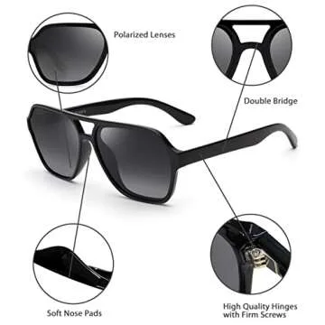 GLINDAR Men's Polarized Aviator Sunglasses Vintage Square Driving Glasses (Shiny Black Frame/Polarized Grey Lens)
