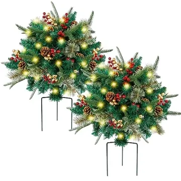 Equipped with a convenient auto timer function (6 hours ON and 18 hours OFF), these urn fillers allow you to savor the delightful ambiance without any fuss. Each piece includes sturdy 3-prong metal stakes for stable installation, ensuring your festive decorations remain beautiful and secure, both indoors and outdoors. Ideal for showcasing at the entrance of your home, along walkways, or within your garden, they enhance the holiday spirit with elegance and warmth.