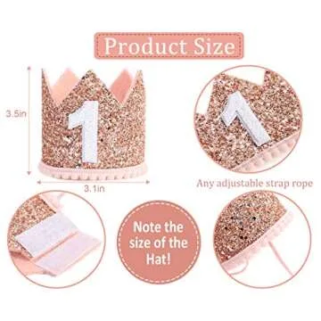 Glitter Birthday Crown - Photo Booth Props, Party Hat for Baby's 1st Birthday (Pink and Gold)