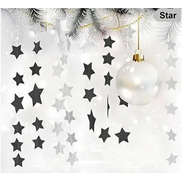Glitter Black Star Hanging Garland - Twinkle Paper Star Banner for Festival Home Wall Decoration, Halloween Themed Party, Birthday Party Decorations, 2.8", Totally 23 ft/7m