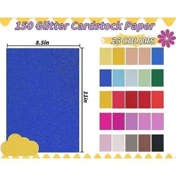 Show moreIntroducing the Glitter Colored Cardstock Bulk, a vibrant and essential crafting supply for all your creative projects! Featuring a generous assortment of 150 sheets of multicolored glitter cardstock, this exquisite collection includes 25 assorted colors with 6 sheets of each color, such as stunning gold, sleek black, shining silver, and lovely pink. Each 8.5" x 11" sheet boasts a thickness of 250gsm (92 lb), ensuring durability and quality that meets all your crafting needs.
