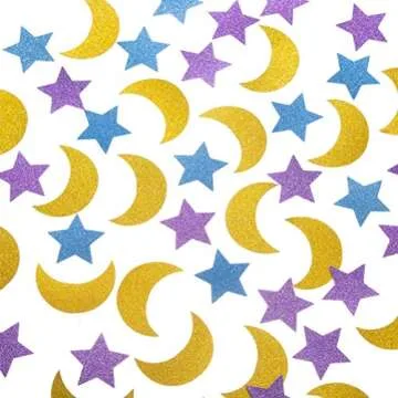 Glitter Paper Confetti Star and Moon for Table Wedding Birthday Eid Party Decoration, 1.2 inch in Diameter (Gold,Purple,Blue Glitter,200pc)