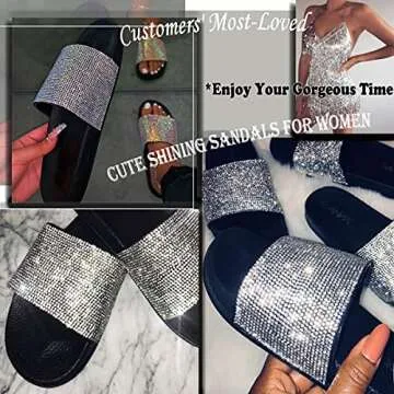Glitter Slides Clear Rhinestone Flat Sandals For Women 2021 Dressy Summer With Arch Support And Comfort Soft Sole Black Size 7