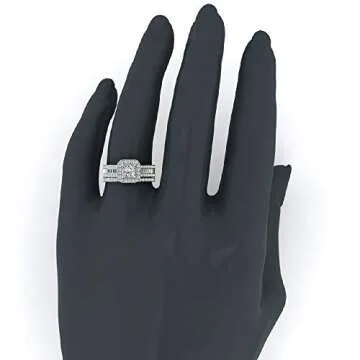 Glitz Design 14K Solid White Gold Princess Cushion Halo Diamond Wedding Ring Set (RS 6)