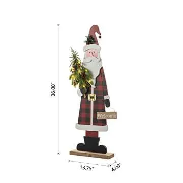 Glitzhome 36" H Lighted Wooden Christmas Santa Porch Sign Standing Porch Decor Rustic Merry Christmas Welcome Sign Holiday Party Outdoor Indoor Xmas Decorations