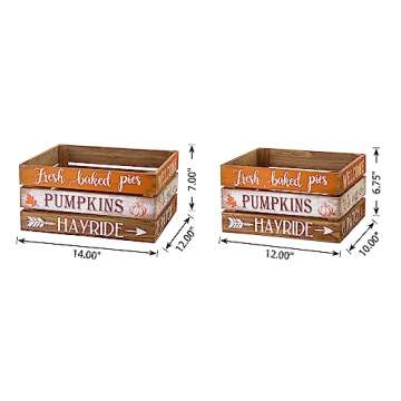 Glitzhome Fall Harvest Wooden Crates, Rustic Nesting Wooden Crates Set of 2, Fall Decorative Storage Gift Wood Crates for Display, Farmhouse Wooden Storage Boxes for Autumn Harvest