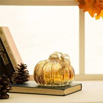 To maintain its beauty, gently wipe the glass pumpkin with a soft, damp cloth. Avoid using harsh chemicals or abrasive materials.