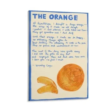 Show more Transform your living space into a haven of inspiration with the exquisite GLKJHAJ The Orange By Wendy Cope Poetry Poster. This stunning canvas wall art piece beautifully blends motivational poetry with modern aesthetics, bringing a unique charm to any room. Crafted with utmost care, it features high-definition giclée printing on premium thick canvas that is not just visually striking but also built to last. Every detail of Wendy Cope's poetic brilliance is captured in rich textures and vibrant colors, making it a true masterpiece for your walls.