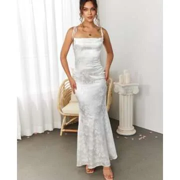 GLNEGE Women's Satin Bodycon Maxi Dress Elegant Formal Spaghetti Strap Cowl Neck Evening Party Dresses White