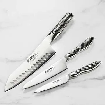 Global Knife Set with Asian Chef’s, Prep and Paring Knives – Stainless Steel, 3 Piece