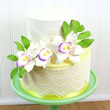 Show moreIntroducing the **Global Sugar Art Pearly Orchid Sugar Cake Flowers**, a stunning collection designed by renowned cake artist Chef Alan Tetreault. Crafted with precision, these large white and purple sugar flowers are perfect for enhancing your cakes and cupcakes, providing a touch of elegance and sophistication. Ready to use right out of the package, each flower is meticulously designed to replicate the beauty of real orchids, making them an exquisite addition to any dessert. The flowers are not only visually appealing but can also be customized further with airbrush techniques, petal dust, or luster dust for a personalized touch. Each flower is dried and durable, allowing you to create stunning displays that can last for years without losing their charm.