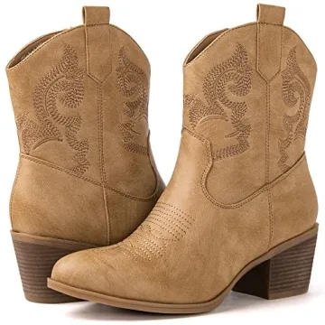 Show moreStep into unparalleled style and comfort with the GLOBALWIN Women's Khaki Cowgirl Boots, designed for women who crave both fashion and function. These trendy ankle to mid-calf cowboy boots are crafted from 100% Vegan Premium Synthetic Leather, ensuring you can flaunt your chic look while adhering to cruelty-free fashion principles. Made with high-quality Italian faux leather, they not only ooze elegance but also align perfectly with your values. Be the trendsetter that you are, as these boots make a strong statement in the world of ethical fashion.