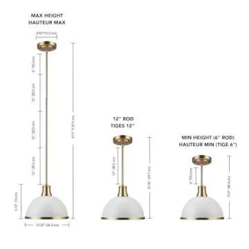 The pendant's adaptability is complemented by its compatibility with a single E26 Medium Base 60W Bulb, allowing you to personalize the lighting experience. Choose from energy-efficient LED bulbs for a sustainable option or traditional incandescent bulbs for a warm, inviting glow. The installation process is hassle-free, thanks to the included mounting hardware, while the adjustable height (from a minimum of 12 inches to a maximum of 51.93 inches) ensures it can fit various ceiling types, including sloped or vaulted designs.