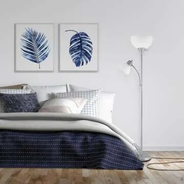 Globe Electric 67134 72" Torchiere Floor Lamp + Adjustable Reading Light, Silver, Frosted Plastic Shade, 3-Step Rotary Switch on Socket, Living Room Décor, Reading Light, Home Essentials, Bedroom