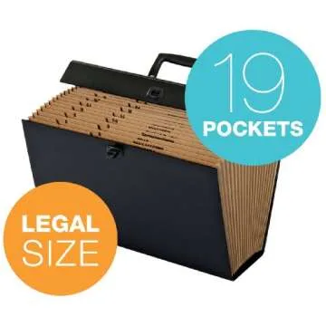 The file case features 19 pockets designed to accommodate legal-sized documents, ensuring all your important papers fit perfectly.