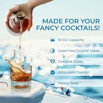 GLORAMA Premium Old Fashioned Whiskey Glasses with Heavy Bottom – Vintage Bar Drinkware for a Cocktail, Bourbon, or Scotch – Durable Crystal Rocks Glass – Set of 4, 10 oz