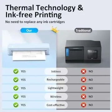 When compared to similar portable printers, the Gloryang Inkless Portable Printer stands out due to its combination of inkless technology and long-lasting battery life. Unlike many portable printers that require constant ink or toner replacements, the Gloryang’s thermal printing mechanism is not only cost-effective but also environmentally friendly. Furthermore, its compact design and robust battery capabilities provide a competitive edge, making it more suitable for a variety of on-the-go printing needs as opposed to bulkier models that might compromise on ease of transport.