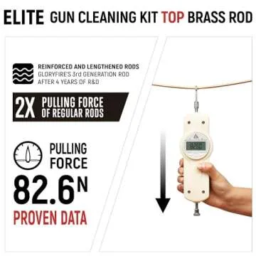 Show more Introducing the GLORYFIRE Elite Gun Cleaning Kit, the ultimate solution for gun enthusiasts seeking reliability and performance in one compact package. Designed with durable, reinforced brass rods, this cleaning kit boasts a strength that’s three times more robust than standard competitors. Born from our commitment to excellence, this kit is an indispensable tool for keeping your firearms in pristine condition. Its exceptional design not only enhances durability but also makes cleaning effortless, whether you’re a novice or a seasoned shooter. With a well-organized layout, each accessory is neatly compartmentalized for easy access, ensuring you have everything you need right at your fingertips.