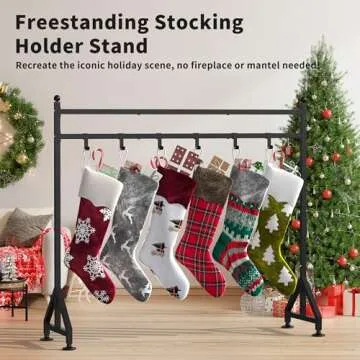GloTika Freestanding Christmas Stocking Holder Stand for Floor, Heavy Duty Christmas Stocking Stand with 8 Hook, Metal Holiday Decor Hanger Display for Home, Floor, Living Room