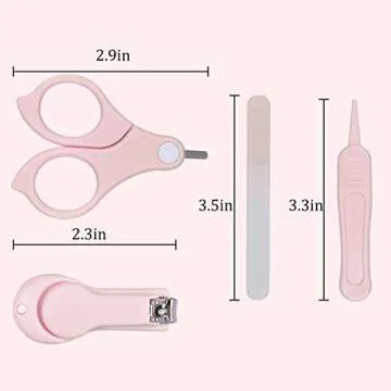 The set features a specialized baby nail clipper with a non-slip handle that ensures a firm grip, making trimming a breeze. With a sleek cutter head design, the nail clipper minimizes the risk of accidental injury, so you can clip worry-free. Also included is a pair of scissors with a larger handle for added comfort during use, a delicate nail file to smooth the edges, and a specially designed tweezer with a rounded head, perfect for safely removing small foreign objects from your baby's nasal cavity or belly button.