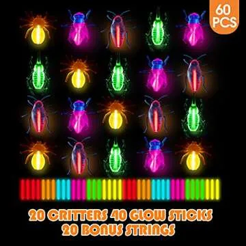 Glow Critters for Halloween Party Favor, Glow in The Dark Toys Set for Kids, School Classroom Game Rewards, Trick or Treating Goodie Supplies, Halloween Miniatures/Prizes,20 Critters 40 Glow Sticks