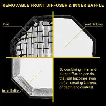 Unlike many conventional softboxes that often require cumbersome setups and specialized tools, the Glow EZ Lock Quick Octa Softbox stands out with its intuitive locking design, making it incredibly easy for photographers of all skill levels to assemble and utilize. Its build quality outmatches others in its class, offering a combination of durability and portability that is hard to find. Additionally, the inclusion of the Eggcrate Grid is a significant advantage, allowing photographers to manipulate light more effectively than with standard softboxes.