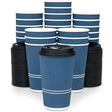 Glowcoast Disposable Coffee Cups With Lids - 16 oz To Go Coffee Cup (70 Set). Large Travel Cups Hold Shape With Hot and Cold Drinks, No Leaks! Insulated Ripple Cups Protect Hands, No Sleeves needed!
