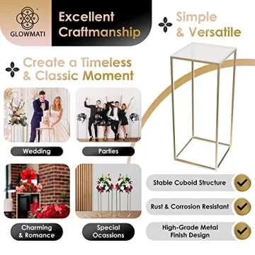 Show moreTransform your floral displays into stunning centerpieces with the GLOWMATI Flower Stand for Wedding. This exquisite five-piece set is designed to elevate any occasion, offering both style and versatility. Crafted with excellent craftsmanship, these stands feature a stable cuboid structure and a high-grade metal finish that provides a timeless elegance to your bouquets. Whether you're organizing a wedding, birthday party, or simply want to brighten your home decor, these flower stands are the perfect solution.