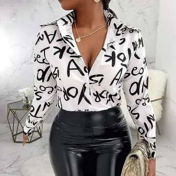 Glozeplus Blouses for Women Fashion 2023 Sexy Long Sleeve Blouse Dressy Colorful Floral Print Loose Collar Tops Blouses & Button-Down Shirts