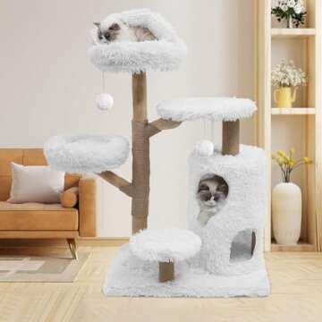 GLUTIA Tall Wooden Cat Tree for Indoor Large Cats, Modern Cat Tree Tower with Jumping Platforms, Cat Condo, Cat Scratching Posts for Multiple Cats