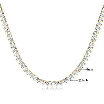 GMESME 3 Prong 18K Yellow Gold Plated Cubic Zirconia Classic Tennis Necklace for Women and Men (22 Inch)