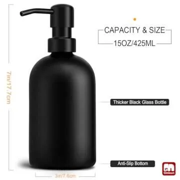 Show moreIntroducing the **GMISUN Black Soap Dispenser**, a chic and modern addition to your home decor. This stylish 2-pack dispenser features a sleek round design and premium matte black stainless steel pump that seamlessly complements any bathroom or kitchen setting. Crafted from **lead-free thick glass**, this soap dispenser not only delivers elegance but also durability, ensuring that your liquids remain safe while adding a touch of sophistication to your countertops.