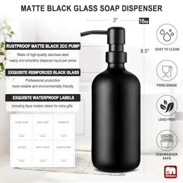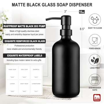 GMISUN Black Soap Dispenser, 2 Pack Matte Black Soap Dispenser Bathroom, 16 Oz Glass Soap Dispenser for Kitchen, Hand and Dish Soap Dispenser Set with Stainless Steel Pump, Modern Liquid Soap Bottle