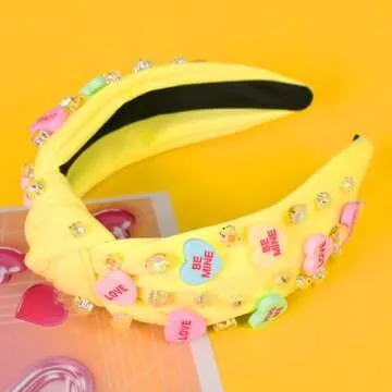 Show more Celebrate love in style this Valentine’s Day with our enchanting Valentine’s Day Headband, a captivating accessory that combines elegance with a heartfelt message. This beautiful headband features a wide top knot that is artistically adorned with sparkling rhinestones and delightful charms, thoughtfully showcasing messages like LOVE, HUG ME, and BE MINE. Each element works together to create a romantic atmosphere, ensuring you turn heads wherever you go.