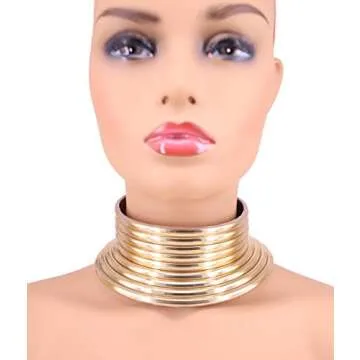 GMQHD Fashion Punk African Gold Resin Choker Necklace for Women, Statement Okoye Egypt Gothic Snap Chunky Leather Jewelry for Best Friend Birthday Christmas. (1-1G)