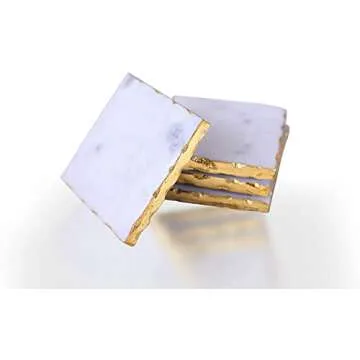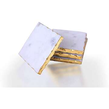 GMRS Home White Marble-Square Coasters with Gold Foiling Set of 4