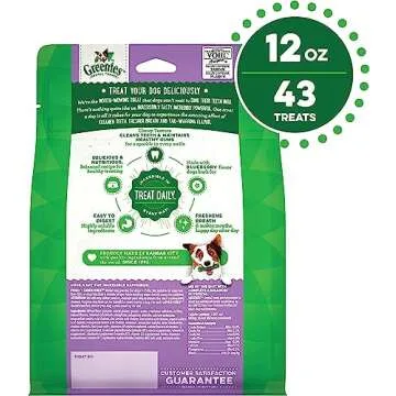 Show moreIntroducing the ultimate solution for your pet's dental health: the Greenies Bursting Blueberry Dental Chews. This fantastic product comes in a convenient two-pack, with each package containing 12 oz. of delicious, teenie-sized chews that your dog will adore. Specifically designed to cater to small and picky eaters, these treats leverage your dog's natural chewing action to effectively wipe away plaque and tartar buildup from their teeth. They not only enhance dental hygiene but also promote fresher breath.