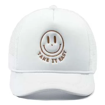 GNAHZNUXNAIX White Happy Face Hat - Take It Easy Trucker Foam Mesh Embroidered Hats for Men