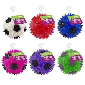 Show moreIntroducing the Gnawsome 3.5” Squeak & Light Soccer Ball Dog Toy, a must-have toy designed for playful pups who thrive on fun and excitement! This vibrant ball not only captivates with its appealing colors but also engages your furry friend with an array of delightful features. Tailored for small to medium-sized dogs, it measures a perfect 3.5 inches in diameter, making it easy for your pet to grab and enjoy. Crafted with food-grade, BPA-free TPR materials, safety and durability are at the forefront of its design. The unique spiky textures offer more than just visual appeal; they help to massage your dog's gums and keep their teeth squeaky clean, merging playtime with dental care seamlessly.