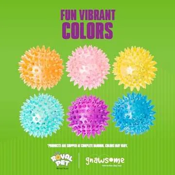 Show more Unleash the joy of playtime with the Gnawsome Dog Toys - 2.5” Spiky Squeaker Ball from Royal Pet Inc. This top-notch toy isn’t just an ordinary squeaker ball; it’s an engaging gadget designed to excite your furry companion while promoting their dental health! Constructed from food-grade, BPA-free TPR, this ball is engineered to be both soft and durable, perfectly catering to the needs of small dogs who adore chewing. Its vibrantly bright colors ensure visibility in any environment, making it perfect for adventures at the park, beach, or garden.