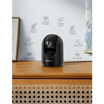 GNCC 2K Security Camera Indoor 360° WiFi Cameras for Home Security with Motion Detection, Pet/Dog/Baby Camera with Phone app, Baby Monitor&Night Vision, TF/Cloud Storage, Black (2.4Ghz WiFi)