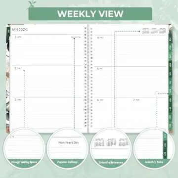 Incorporating clever design features, this planner also includes a bookmark to easily locate important dates and notes. The colored tabs enhance organization, allowing you to quickly navigate through your planner. With its flexible cover and spiral binding, flipping through the pages is a breeze, making it perfect for use at home, work, or school.