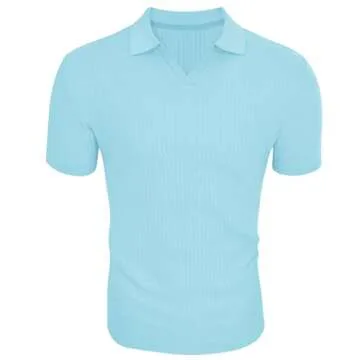 Gnvviwl Men's Muscle V Neck Polo Shirt - Slim Fit, Soft Cotton, Sky Blue