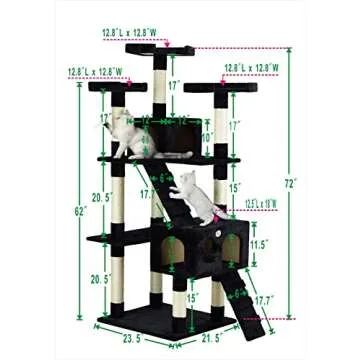 Go Pet Club 72" Tall Cat Tree Tower with Cat Condos - Large Cat Tree - Cat Tower for Indoor Cats - Play Scratch Hide Climb Activity Furniture with Toy - Black