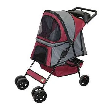 Go Pet Club Stylish Pet Stroller in Maroon/Silver with Safety Features