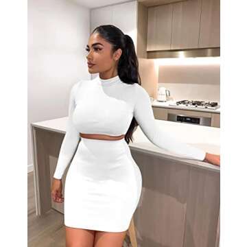 GOBLES Women's 2 Piece Skirt Sets Long Sleeve Bodycon Elegant Dress Outfits White