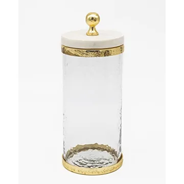 Godinger Canister Storage Container, Glass Storage Canister, Marble with Gold Band - 4x8