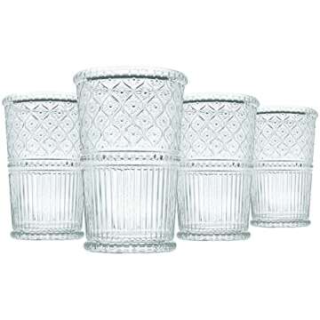 Godinger Highball Drinking Glasses, Tall Glass Cups, Vintage Decor, Water Glasses, Cocktail Glasses - Claro Collection, 12oz, Set of 4
